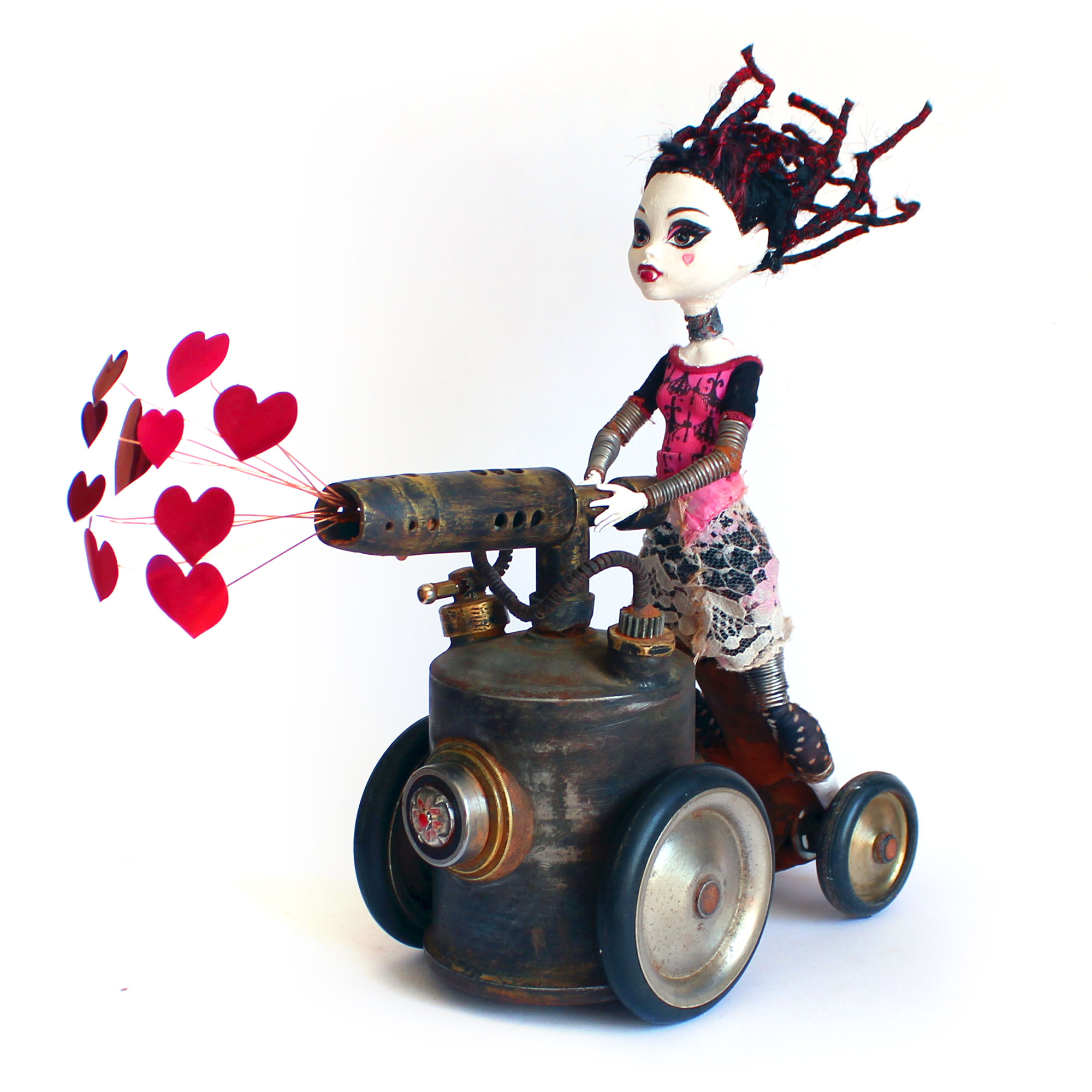 Détournés de leur fonction initiale, les objets et machines du quotidien, démontés, triés puis ré-assemblés prennent corps, s’hybrident, se complètent, se combinent, se concentrent, s’animent, s’éclairent, pour donner vie à de singulières œuvres décoratives.