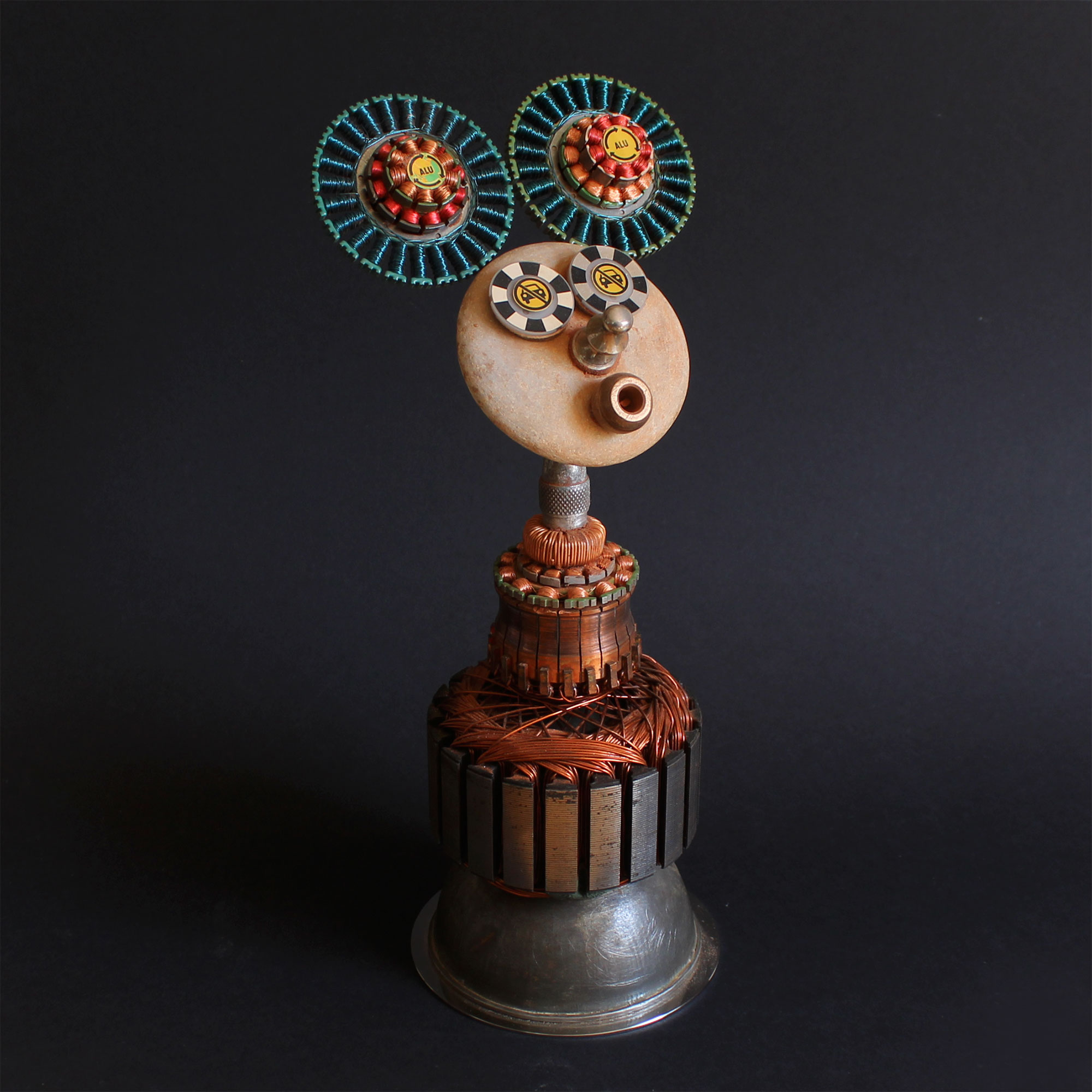 Matériaux : Rotor, galet, burette, bobines et autres éléments métalliques.